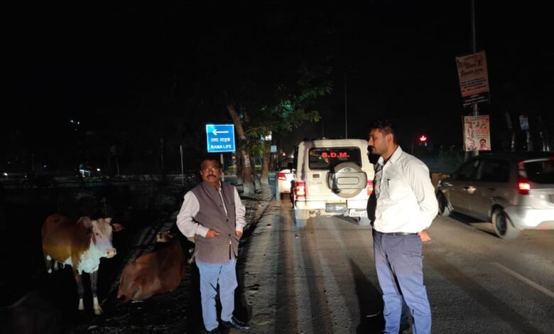 संभायुक्त श्री कावरे रात में निकले सड़कों पर* *तखतपुर रोड पर बैठे मवेशियों को हटाने दिए निर्देश*