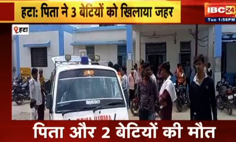 हटा: MP News: मध्य प्रदेश के हटा से एक दिल दहला देने वाली खबर निकलकर सामने आ रहिए है। यहां एक पिता ने 3 बेटियों को जहर खिला दिया। इतना ही नहीं इसके बाद पिता ने खुद भी जहर का सेवन कर लिया। इस बात की जानकरी मिलते ही चारों को आनन-फानन में अस्पताल ले जाया गया। अस्पताल में डॉक्टरों ने पिता और 2 बेटियों को मृत घोषित कर दिया। वहीं 1 बेटी का अस्पताल में इलाज जारी है।