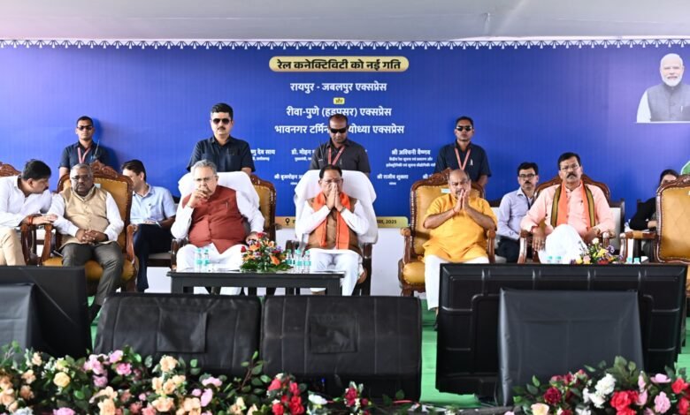 छत्तीसगढ़ बिलासपुर भूपेंद्र साहू ब्यूरो रिपोर्ट।, 3 अगस्त 2025*। भारतीय रेल द्वारा रायपुर और जबलपुर के बीच व्हाया गोंदिया, बालाघाट होकर जाने वाली सीधी एक्सप्रेस सेवा की शुरुआत आज दिनांक 03 अगस्त 2025 को रायपुर रेलवे स्टेशन से की गई। इस अवसर पर छत्तीसगढ़ के मुख्यमंत्री विष्णुदेव साय, अश्विनी वैष्णव, केंद्रीय रेल, सूचना एवं प्रसारण और इलेक्ट्रानिकी एवं सूचना प्रौद्योगिकी मंत्री तथा मध्यप्रदेश के मुख्यमंत्री डॉक्टर मोहन यादव ने संयुक्त रूप से ट्रेन को हरी झंडी दिखाकर रवाना किया।