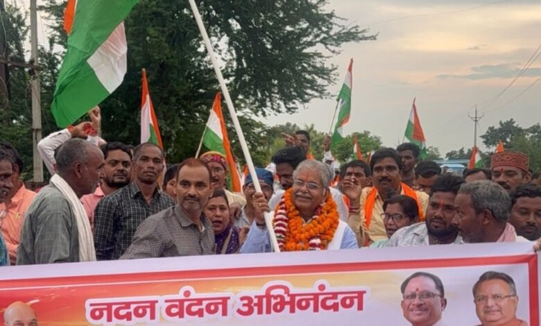 पूर्व विधानसभा अध्यक्ष धरमलाल कौशिक के नेतृत्त्व में ग्राम धमनी से निकली तिरंगा यात्राकहा – तिरंगा राष्ट्रीय एकता, सांस्कृतिक सौहार्द और स्वतंत्रता आंदोलन के त्याग का प्रतीक है।
