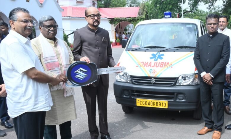राज्यपाल ने वनवासी विकास समिति को सौंपी एम्बुलेंस की चाबी।
