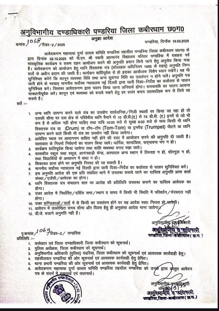 पंडरिया__ नगर पंडरिया में दशहरा महोत्सव के उपलक्ष्य में भव्य आयोजन किया जा रहा है, पंडरिया के स्वामी श्री आत्मानंद विद्यालय में छत्तीसगढ़ की सुप्रसिद्ध गायिका सीमा कौशिक का शानदार जगराता सांस्कृतिक कार्यक्रम का आयोजन किया गया है,उसके पूर्व इस आयोजन में अधर्म पर धर्म की जीत के इस महापर्व में प्रभु श्रीराम जी की झाकी निकाल कर अधर्मी रावण का वध किया जाएगा,इस आयोजन में 61 फिट के रावण व मेघनाद दहन का कार्यक्रम रखा गया है, भव्य आतिशबाज़ी इस आयोजन का आकर्षण होगा, इस कार्यक्रम में विधानसभा की उत्कृष्ट विधायक श्रीमती भावना बोहरा जी मुख्य अतिथि में होगी जिनकी गरिमामई उपस्थिति में यह विशाल आयोजन सम्पन्न होगा