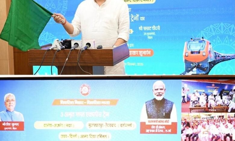 रेल मंत्री अश्विनी वैष्णव ने बिहार के लिए 3 अमृत भारत एक्सप्रेस और 4 पैसेंजर ट्रेनों को हरी झंडी दिखाकर रवाना किया। छठ और दिवाली के दौरान 12,000 स्पेशल ट्रेनें चलेंगी; पिछले वर्ष के 7,500 से अधिक।