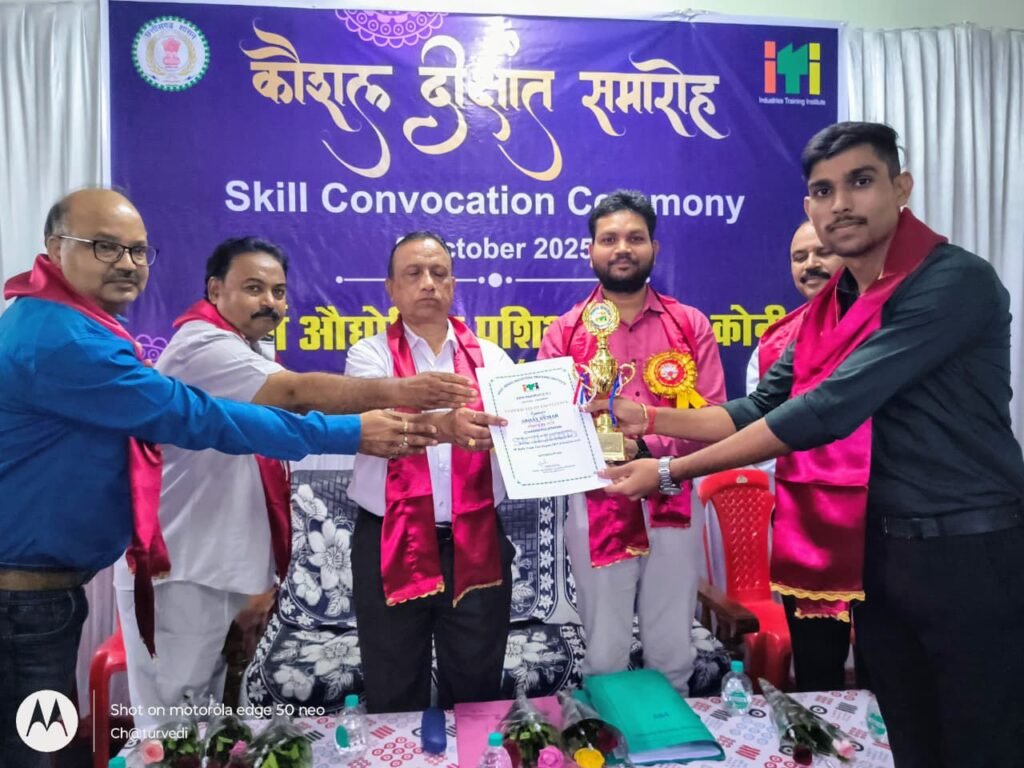 छत्तीसगढ़ बिलासपुर भूपेंद्र साहू ब्यूरो रिपोर्ट। 9 अक्टूबर 2025/औद्योगिक प्रशिक्षण संस्था कोनी में कौशल दीक्षांत समारोह का आयोजन किया गया । दीक्षांत समारोह में मुख्य अतिथि के रूप में क्षेत्रीय कार्यालय के संयुक्त संचालक ए. के. सोनी शामिल हुए। समारोह में संस्था के कुल 28 व्यवसायों के प्रावीण्य उत्तीर्ण प्रथम, द्वितीय एवं तृतीय स्थान प्राप्त 77 प्रशिक्षणार्थी तथा परीक्षा सत्र अगस्त 2025 में उत्तीर्ण अंतिम वर्ष के 882 प्रशिक्षणार्थी सम्मिलित हुए। जिनमें से व्यवसाय शीट मेटल के प्रशिक्षणार्थी अभय कुमार का सर्वोत्तम अंक 99.1 प्रतिशत रहा। इस समारोह में सभी व्यवसाय के प्रावीण्य प्रशिक्षाणार्थियों को प्रमाण पत्र, एनटीसी एवं पुरस्कार प्रदान किया गया। समारोह के समापन में संस्था के प्रशिक्षणार्थियों द्वारा सांस्कृतिक कार्यक्रम की प्रस्तुति दी गई एवं अंत में संस्था प्राचार्य नवीन कुमार साहू के द्वारा समारोह के समापन की घोषणा की गई।