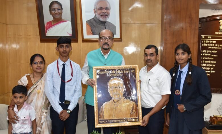 CG राज्यपाल को मड़ानार स्कूल के बच्चों ने भेंट की काष्ठ कला से निर्मित पोट्रेट/काष्ठ कला प्रशिक्षण के लिए राज्यपाल ने दिए 50 हजार अनुदान