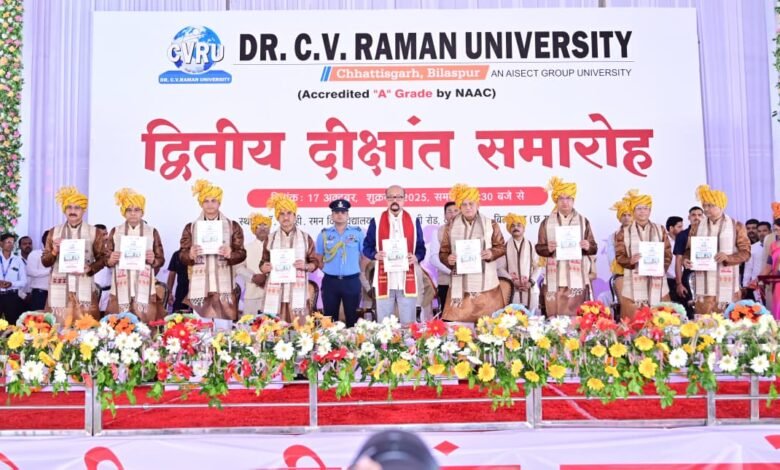 सीवी रमन विश्वविद्यालय के दीक्षांत समारोह में शामिल हुए राज्यपालसमर्पण अनुशासन और समय प्रबंधन से मिलती है सफलता – राज्यपाल रमेन डेका195 को पीएचडी एवं 189 विद्यार्थियों को गोल्ड मेडल से नवाजा