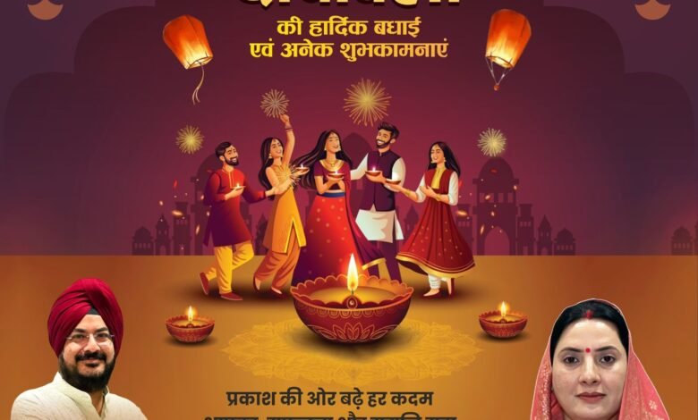 दीपावली की हार्दिक बधाई एवं शुभकामनाएं: पूजा मक्कड़ (रविंदर) अध्यक्ष नगर पालिका परिषद तखतपुर/आत्मजीत सिंह मक्कड़ (संजू) सचिव प्रदेश कांग्रेस कमेटी छत्तीसगढ़