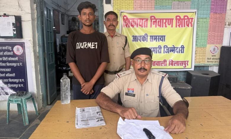 छत्तीसगढ़ बिलासपुर भूपेंद्र साहू ब्यूरो रिपोर्ट। जप्त सामान: 01 नग धारदार बटन वाला चाकू