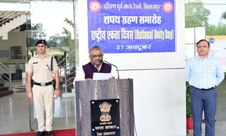 राष्ट्रीय एकता दिवस के अवसर पर आज दक्षिण पूर्व मध्य रेलवे, मुख्यालय, बिलासपुर में महाप्रबंधक श्री तरुण प्रकाश ने अधिकारियों, कर्मचारियों को दिलाई राष्ट्रीय एकता की शपथ
