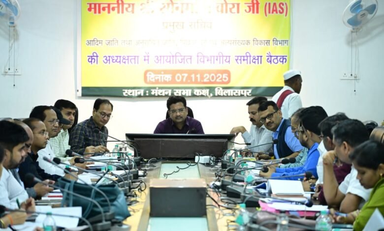 प्रमुख सचिव सोनमणी बोरा ने की विभागीय योजनाओं की समीक्षा। जनजातीय गौरव दिवस एवं राज्य स्तरीय कार्यक्रमों की तैयारियों को लेकर दिए आवश्यक निर्देश। 21.73 करोड़ की लागत से जरहाभाठा में बनेगा 300 सीटर बालक छात्रावास।