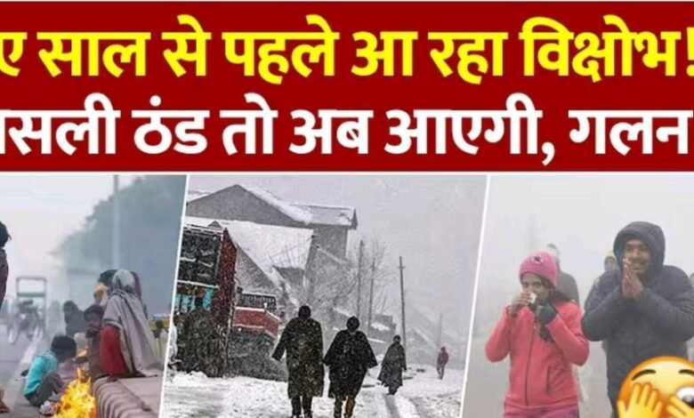 नए साल से पहले आ रहा है पश्चिमी विक्षोभ ; असली ठंड अब, यहाँ भारी बारीश ; वर्तमान में उत्तर भारत के कई राज्य भीषण शीत लहर की चपेट में हैं। जम्मू-कश्मीर, हिमाचल प्रदेश और उत्तराखंड जैसे पहाड़ी राज्यों में लगातार बर्फबारी हो रही है, जिसका सीधा असर दिल्ली-एनसीआर, उत्तर प्रदेश, हरियाणा और राजस्थान जैसे मैदानी इलाकों पर पड़ रहा है। भारतीय मौसम विज्ञान विभाग (IMD) ने चेतावनी जारी की है कि आने वाले 3-4 दिनों में न्यूनतम तापमान में 5 डिग्री सेल्सियस तक की भारी गिरावट दर्ज की जा सकती है, जिससे ठिठुरन और अधिक बढ़ जाएगी।कोहरे का पूर्वानुमान और दृश्यता की चुनौती