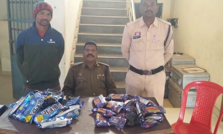 जप्त – 15 पैकेट राजश्री गुटखा 15 पैकेट विमल गुटखा केपी हित , 01 पुडा बिडी जयंती, 05 कटटा सोल्जर बिडी एवं 05 पैकेट चार्म्स सिगरेट जुमला किमती 5000 रूपये