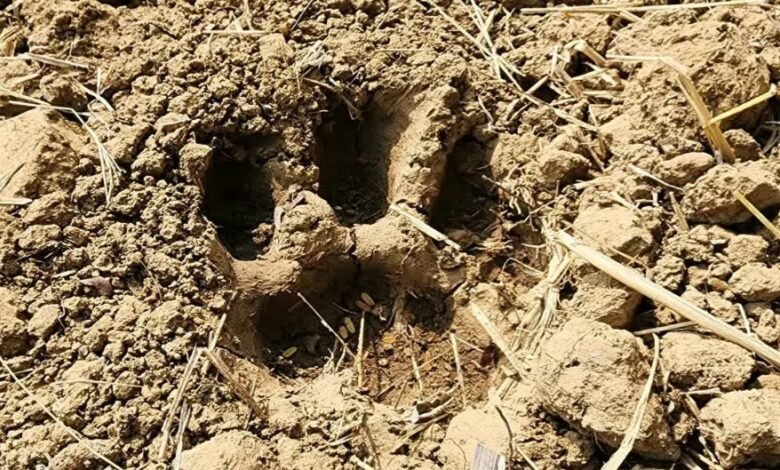 खेतों में मिले जंगली जानवर के पद चिन्ह