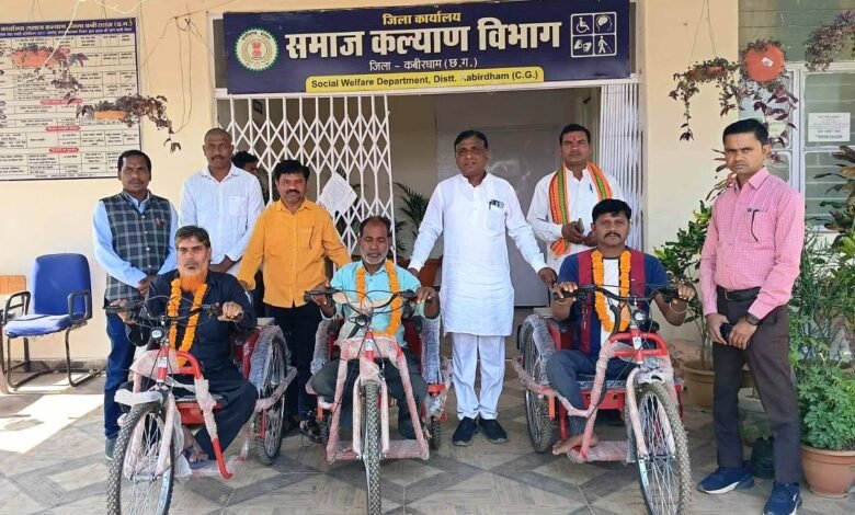 कवर्धा, 15 जनवरी 2026। समाज कल्याण विभाग कबीरधाम द्वारा आज अस्थि बाधित तीन दिव्यांगजनों को बैटरी चलित मोटराइज्ड ट्रायसायकल का वितरण किया गया। ग्राम बरबसपुर के श्री पुन्नीदास, ग्राम महराटोला के श्री रमेश पटेल तथा कैलाश नगर कवर्धा के श्री युसुफ खान को यह ट्रायसायकल प्रदान की गई। मोटराइज्ड ट्रायसायकल मिलने से दिव्यांगजन अब आवागमन में अधिक सक्षम होंगे और दैनिक कार्यों में सुविधा प्राप्त करेंगे। वितरण कार्यक्रम में नगर पालिका अध्यक्ष श्री चन्द्रप्रकाश चन्द्रवंशी, सभापति श्री बिहारी राम धुर्वे, पार्षद श्री सौखी अहिरवार, श्री दीपक सिन्हा, श्री बीर सिंह पटेल सहित समाज कल्याण विभाग के कर्मचारी उपस्थित थे। नगर पालिका अध्यक्ष श्री चंद्रप्रकाश चंद्रवंशी ने कहा कि दिव्यांगजन कल्याण के लिए छत्तीसगढ़ सरकार की इस पहल से समाज में सकारात्मक परिवर्तन आ रहा है। पात्र हितग्राहियों को आवश्यक उपकरण उपलब्ध होने से उन्हें आत्मनिर्भर बनने में मदद मिलेगी।