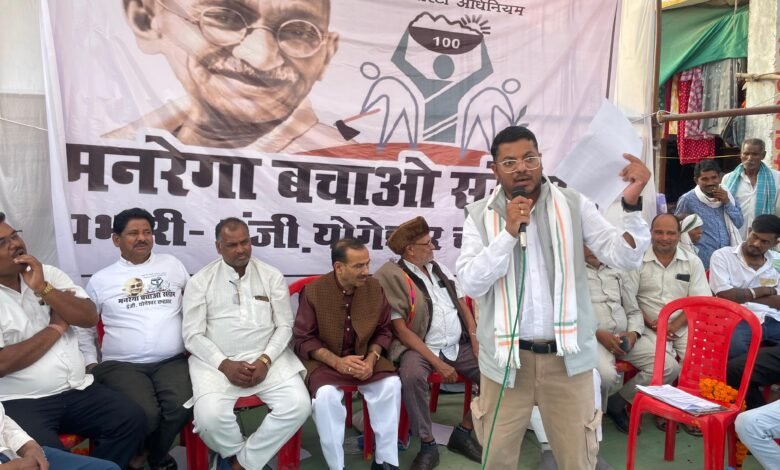 भारत माता चौक कुंडा में मनरेगा बचाओ संग्राम का जोरदार प्रदर्शन:-प्रभारी इंज़ी योगेश्वर चन्द्राकर