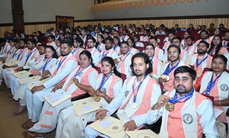 रायपुर l इंदिरा कला संगीत विश्वविद्यालय का 17वां दीक्षांत समारोह आयोजित किया गया, जिसमें राज्यपाल रमेन डेका ने 5 शोधार्थियों को डी.लिट् और 64 शोधार्थियों को शोध उपाधि प्रदान की। उन्होंने 236 विद्यार्थियों को पदक वितरित किए, जिनमें 232 स्वर्ण पदक और 4 रजत पदक शामिल हैं। राज्यपाल ने विद्यार्थियों से अपने ज्ञान और कला का उपयोग राष्ट्र निर्माण और समाज के कल्याण के लिए करने का आह्वान किया।