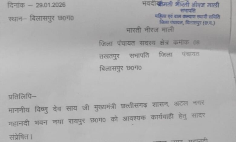 तखतपुर l जिला पंचायत सदस्य क्षेत्र क्रमांक 08 भारती नीरज माली ने खनिज विभाग को खनिज विभाग को बनाया निशाना किया कलेक्टर से किया शिकायत सौपा ज्ञापन जिला बिलासपुर क्षेत्र क्रमांक 08 में घुटकू, गनियारी क्षेत्र में मुरुम एवं रेत का अवैध खनन एवं परिवहन खनिज विभाग के संरक्षण में खुलें आम चल रहा हैं l