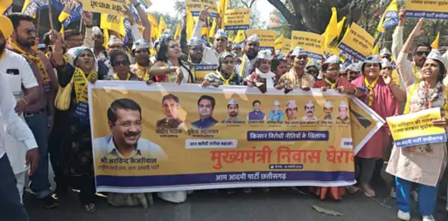 रायपुर : छत्तीसगढ़ में धान खरीदी को लेकर सियासत चरम पर है। आम आदमी पार्टी ने 10 फरवरी को राजधानी रायपुर में मुख्यमंत्री विष्णु देव साय के निवास का घेराव किया। पार्टी का आरोप – सरकार ने लाखों किसानों को धोखा दिया है!”
