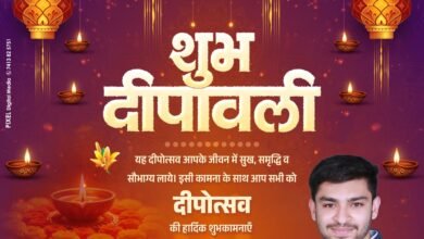 अंकित गौरहा : आपको और आपके परिवार को दीपावली के महापर्व की अनंत शुभकामनाएं। छत्तीसगढ़ बिलासपुर भूपेंद्र साहू ब्यूरो रिपोर्ट।…