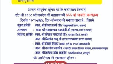 कबीरधाम नामदेव जयंती में 17 को शामिल होंगे उपमुख्यमंत्री विजय शर्मा कबीरधाम जिले के समस्त जिला नामदेव समाज द्वारा भव्य…